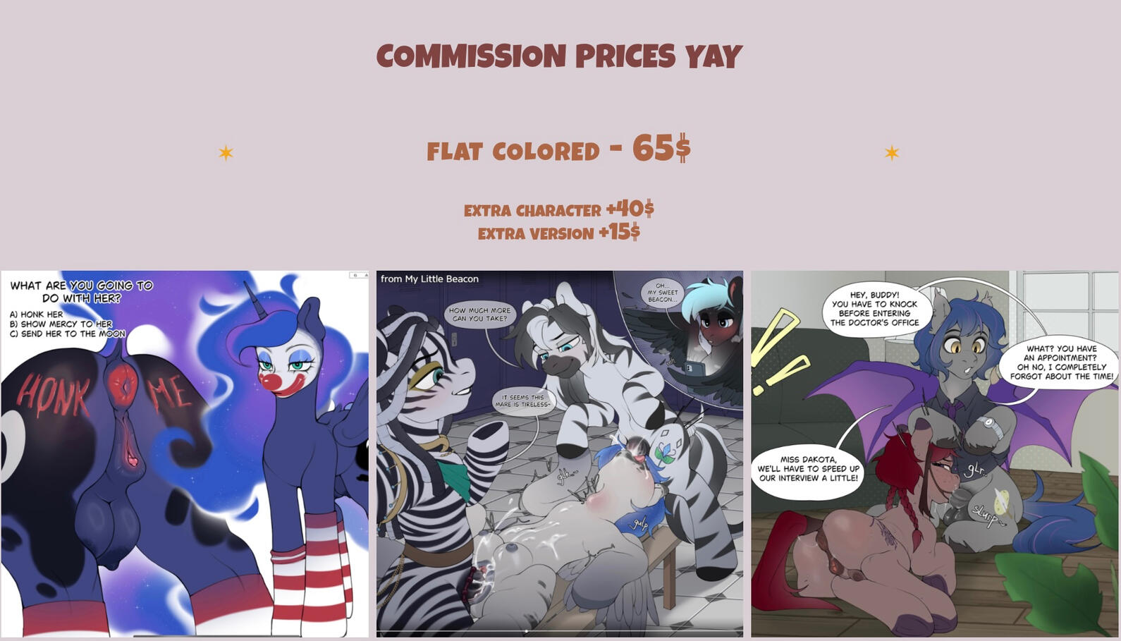 gore, pedophilia, coprophilia, violence, political art❊ Payment method is Paypal❊ You've got to send me a reference of your character, at least a screenshot from Pony Town lol❊ If you have a valid reason, a refund is possible, but only if I have not yet started working on your comm❊ The completion time depends on the queue load. One order takes approximately 3-9 days. You can find the full queue below❊ Massive edits after the final result hurt my feelings, but if I forgot something you asked for, I'll gladly fix it for free❊ Commercial use costs +50% from the final price❊ Private commission costs +20% from the final price❊ Don't hesitate to ask a question, I'm friendly gal